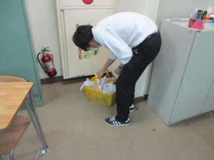 校舎内外周の点検、朝の打ち合わせでの教職員全員での周知、授業以外の教職員による校舎内外の点検を実施しています。