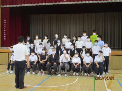 体育館でクラス写真を撮影しました。