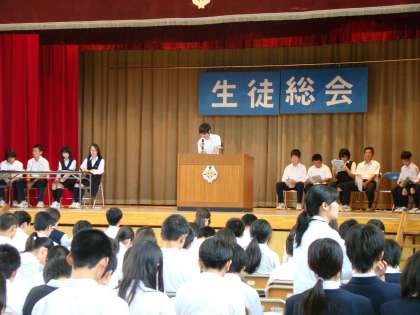 この中から選出された4人の議長団が議事進行をし、委員長が各委員会の活動内容や生徒へのお願いなどを話しました。