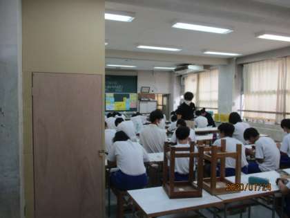 ホールでは以前数学の少人数を行っていましたが、現在は音楽の授業が行われています。