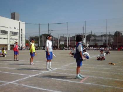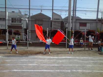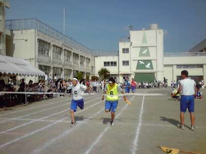紅白代表リレー…各学年男女1名ずつのチームを2つ編成しました。一番の見所です。