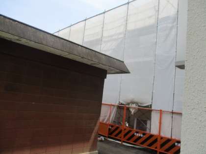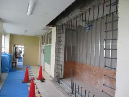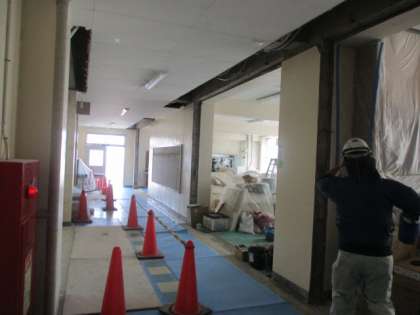 壁の耐震補強や教室の出入り口のドアの改修が行われています。