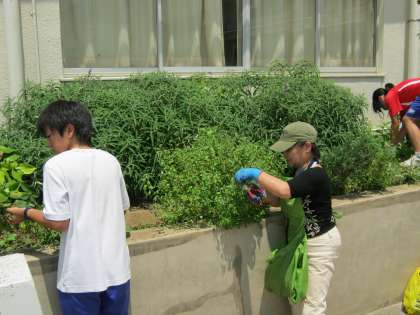 授業参観を終え、生徒たちは、ボランティア活動を行いました。
