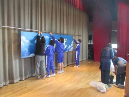 本番を翌日に控え、2年生全員が会場準備を行いました。