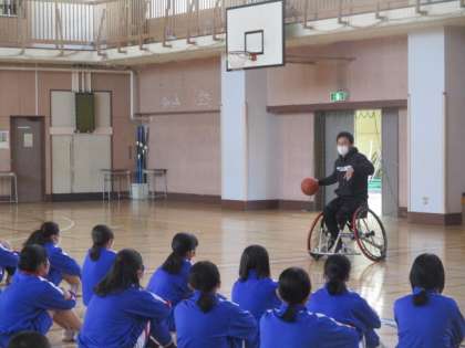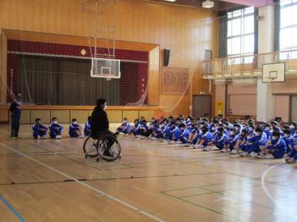 講師の先生は車いすバスケットボールの選手である、堀江 航 氏です。