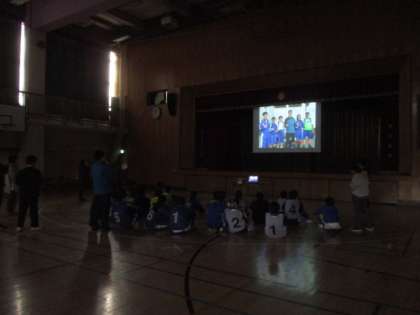 最後は体育館を暗くして、思い出の写真を見てみんなで懐かしみました。
