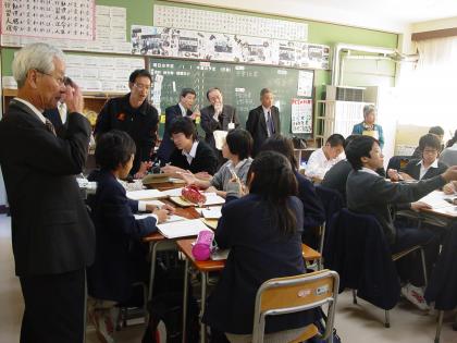 11月18日、島根県経済同友会の方々が、本校の教科「日本語」哲学の授業を視察にいらっしゃいました。今日の哲学の授業は、「ルールづくり」の一環で、「ゴミ集積所をどこに」という題材の授業でした。