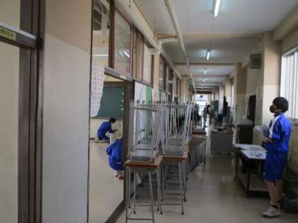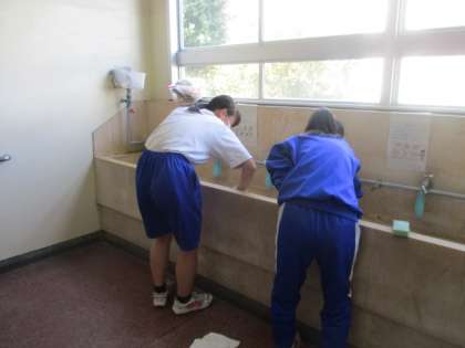 来年度使う人たちが気持ちよく過ごせるように、一年間の汚れをみんなで落としました。