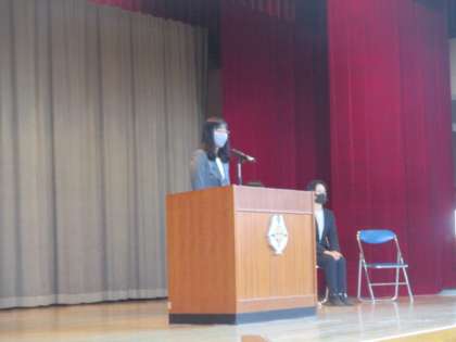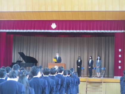 始業式の前に今年度転出された先生方と転入された先生方を校長先生がご紹介くださいました。