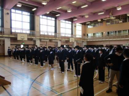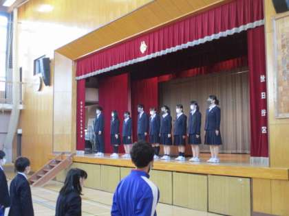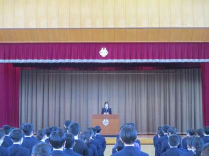 各委員会の委員長の紹介や生徒会長の話がありました。