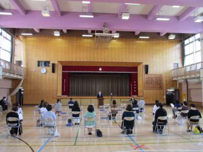 感染症対策として、体育館とZoomを活用しての説明会を行いました。