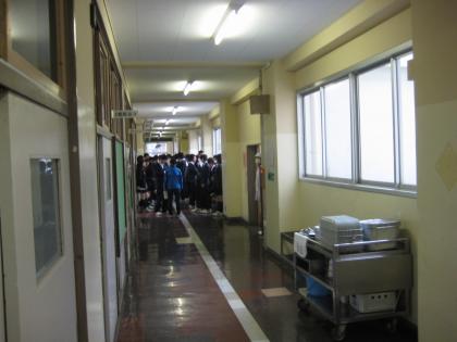 避難開始から全クラスの点呼まで2分36秒でした。廊下への整列、人員点呼、学級毎に副校長への報告まででしたが、とてもスムーズにできました。