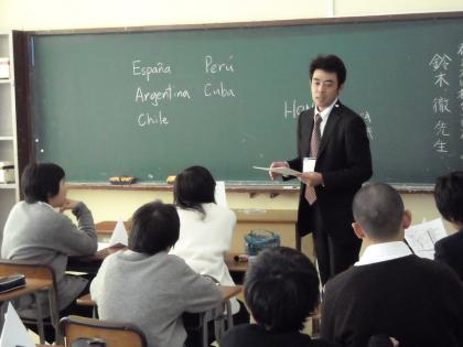 都立大田桜台高校の鈴木徹先生には、「スペイン語」の授業をしていただきました。みんなで声を出しながら、会話の基礎を学びました。