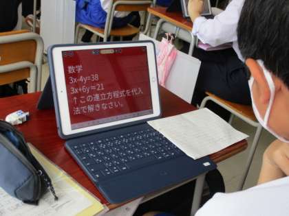 ロイロノートを使い、テストの予想問題の作成をしています。