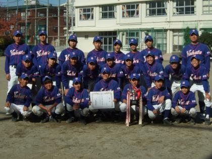 約1ヶ月半にわたって開催されていた世田谷区中学校野球秋季研修大会の決勝戦が11月30日(日)にありました。決勝戦の対戦カードは、八幡中対砧南中でした。決勝戦にふさわしい好ゲームで、結果1×−0で勝利、見事優勝して新人戦のリベンジを果たしました。今後は来年度の春季・夏季大会の都大会出場を目指して、一生懸命練習してきます。保護者や地域、関係者の皆様には盛大なご声援いただきましてありがとうございました。