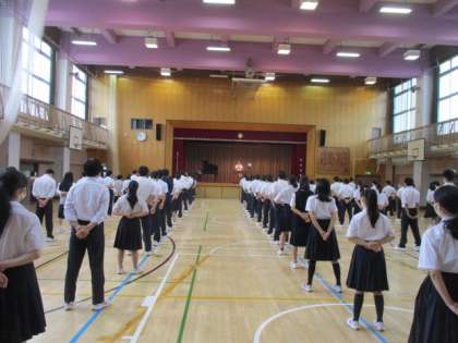 C組と3年生が体育館、1・2年生は教室からの参加となりました。
