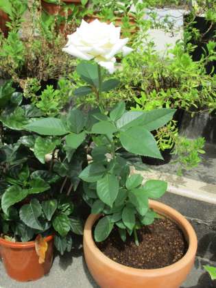 写真は6月にいただいたバラを挿し木にしてみたら見事に咲いたのでそのお披露目です。素人考えですが、元が元気のいいバラだったからうまくいったのだと思います。