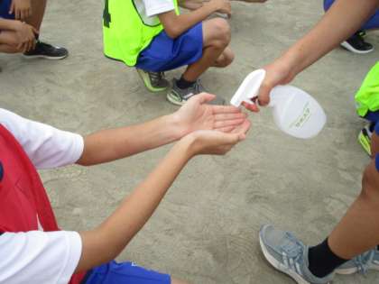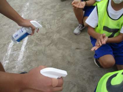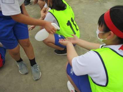 競技中も消毒作業を行っています。