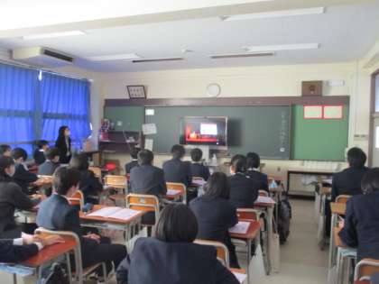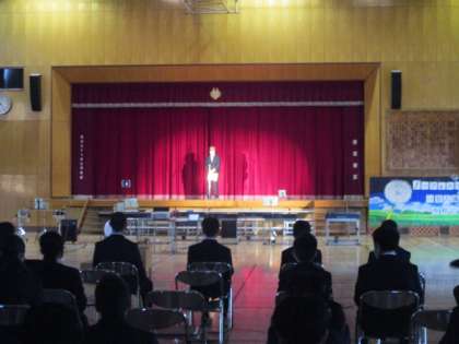 1年生だけが体育館に入り、2・3年生は教室から参加します。