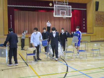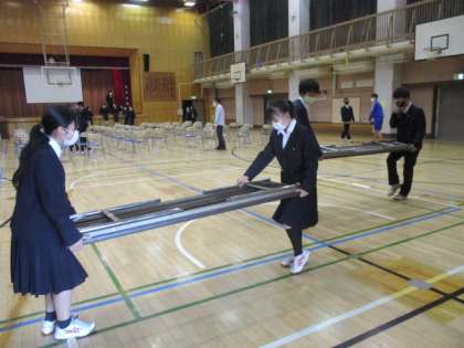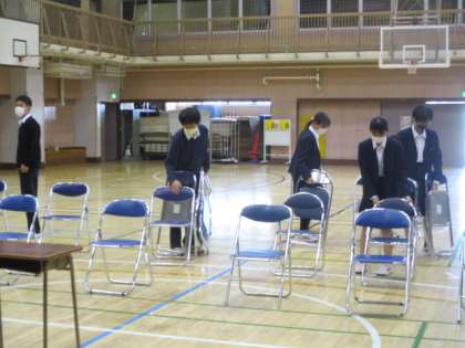 昼休みに3年生が進路説明会の会場設営を行いました。