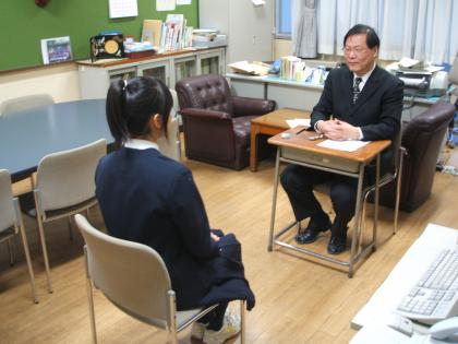 放課後に校長先生が生徒一人ひとりと15分程度面接練習を行っています。
