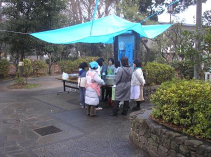 当日は朝から小雨が降り、寒さが厳しい一日でしたが、生徒たちは朝8時半の会場準備からはじめ、釜戸のたきおこしやつきたてのお餅のラッピング、模擬店やゴミ分別の手伝いなどをし、2時からの会場片付けの最後まで手伝いをしていました。