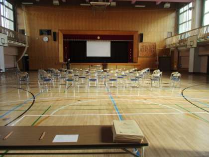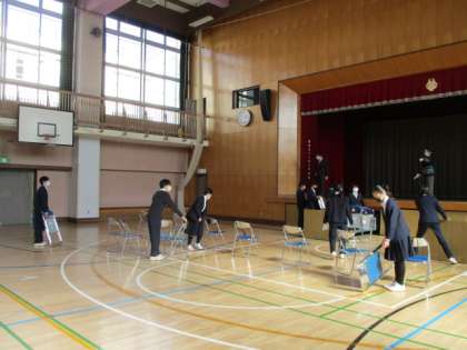新入生保護者説明会のために2年生が会場の準備をしてくれました。