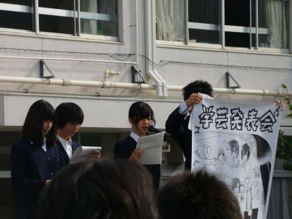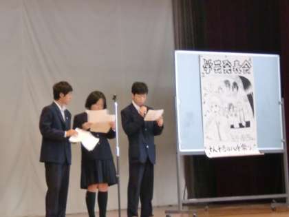 この度、生徒会は八幡小学校、九品仏小学校の朝礼にお邪魔して、学芸発表会についてお話をさせていただき、プログラムなども配布させていただきました。学芸発表会にはプログラムに小学生合唱もあり、その呼びかけもしました。新しい生徒会役員も、緊張した面持ちでしたが、学芸発表会を盛り上げたい一心で一生懸命話しました。小学生のみなさん、ぜひ八幡中の学芸発表会に来てくださいね!!