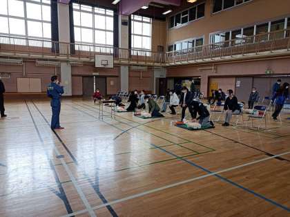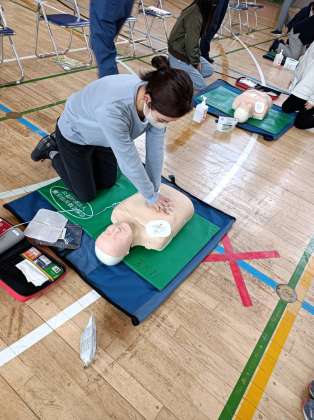 始業式を前に、恒例となっている職員研修です。消防署から講師を招いての救急救命講習、アレルギーエピペン講習をロールプレイング形式で行いました。
