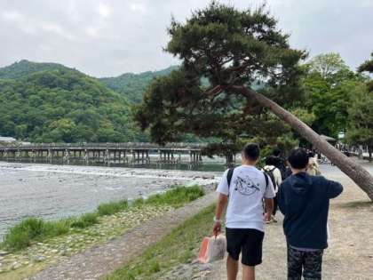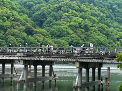 渡月橋付近を散策中。さすがに観光客もたくさんいます。