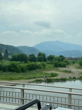 いちばん高いのが愛宕山、その前が小倉山。C組は太秦へ1号車は神護寺へ。