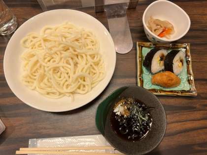 全員無事、時間どおり集合しました。昼食はうどんと巻き寿司。