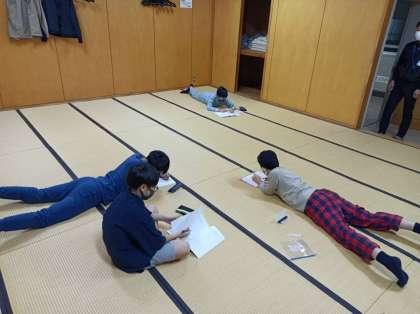班長会議をしている間に、部屋ではしおりをつかって今日の活動を振り返っています。