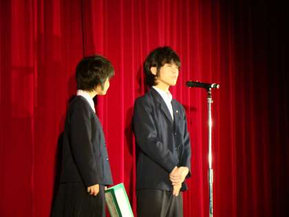 閉会式での実行委員長の言葉を紹介します。「今年の学芸発表会は全学年でやり遂げることが出来ました。そして僕たち三年生にとって最高の思い出になりました。ご来校くださった保護者や地域の方々、ありがとうございました。」