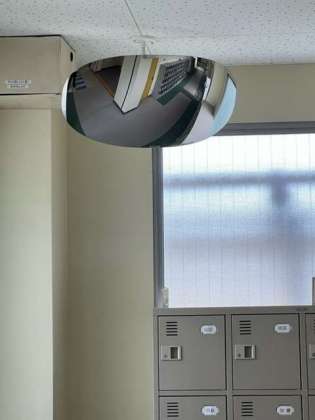 校内の6箇所の曲がり角にコーナーミラーを設置してもらいました。