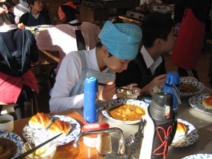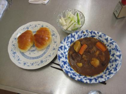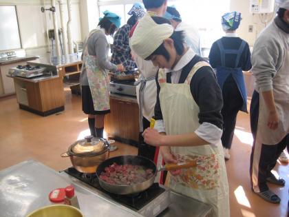 1月14日、C組では今学期最初の調理実習を行いました。今回のメニューは、「ビーフシチュー」「大根サラダ」「バターロール」でした。このメニューは、3年生がリクエストしたものでした。