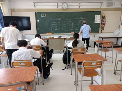 英語検定と数学検定合格を目指し、講師を招いて検定対策講習を行っています。本日は今年度第一回の講習会が行われました。