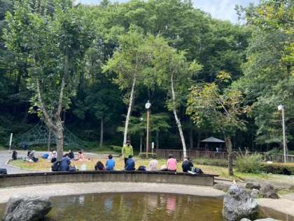 忍野村の湧水の里水族館で見学。そして、樹木の甘い香りに包まれながらの昼食です。