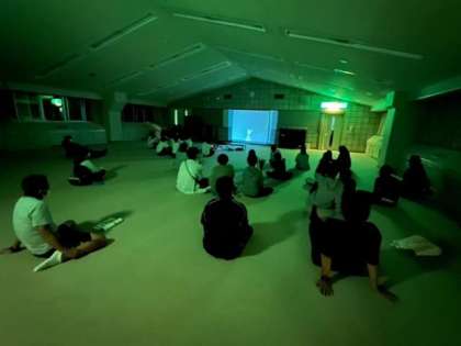 夕食後には、八幡中は体育館でバスケットボールをする人と、ビデオ鑑賞をする人に分かれてのレクタイム。