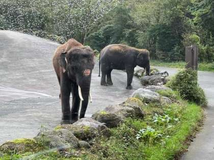 高速で移動中、霧雨が降っていましたが、サファリパークに着いたら止みました。みんなバスから見る動物たちに興奮してます。