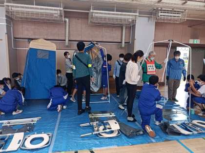 本日行われた避難所運営訓練に産能大からたくさんの学生がお手伝いに来てくれました。