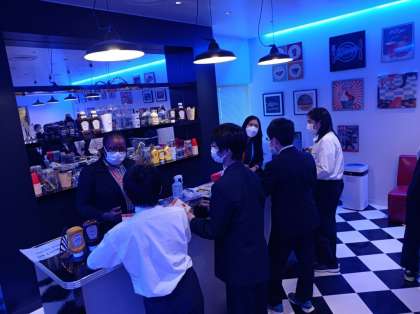 午後からは、レストランやバー、コンビニなど様々な場面を想定した実施の体験学習を行いました。