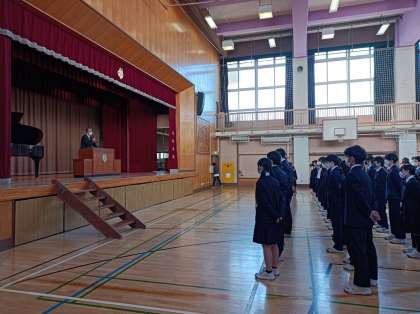 校長先生の話、表彰、生活指導主任の話などがありました。
