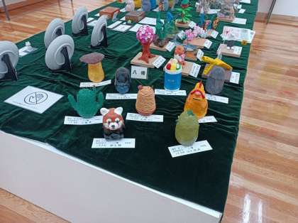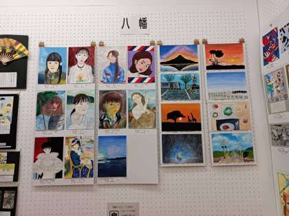 八幡中学校からは美術や技術、家庭、国語で作成した60点以上の作品が出品されています。