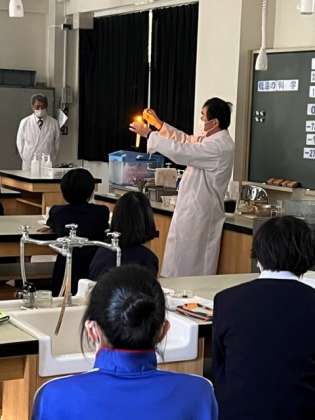 区の科学実験教室の先生3名が、前日から実験器具を搬入、準備してくださり、今日の実験授業を実施してくださいました。