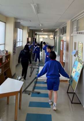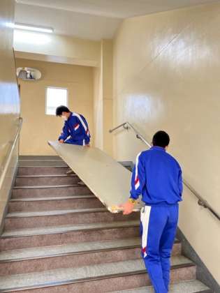 学芸発表会実行委員会の生徒たちが、展示パネルを運んで設置しました。何度も往復して大きなパネルを運ぶのですが、てきぱき動く姿はかっこよかったです。