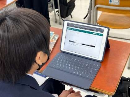 今日は、2年生が事前検証(2回目)のため、iPadでこのシステムに入り、英語の質問に答える検証をしました。