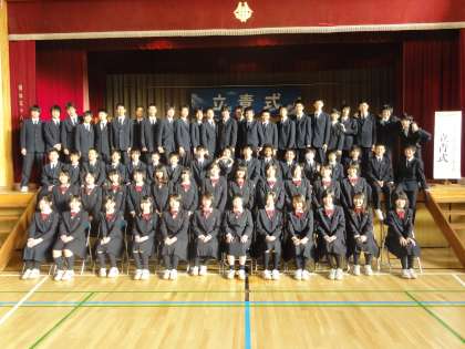 第44回立青式が行われました。昨年の11月から取り組みを始め、1人1人が意見文を作成し、クラスメートの前で発表しました。