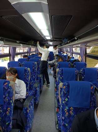 東京都 笑顔にするプロジェクトとして、3年生が「劇団四季 ライオンキング鑑賞」に来ています。これからバスが出発します