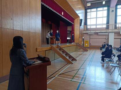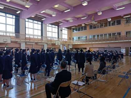 卒業式当日は1年生が参加できないため、予行練習に参加しました。3年生の立派な態度や合唱に感動していました。前日準備も1年生と2年生で完成させ、あとは当日を待つのみです。